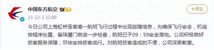 机组人员表示,MU721已经于上午安全降落厦门,没有人员受伤,目前乘客都在登机口候机,收到通知是航司正在准备换飞机,计划下午三点半继续飞往香港。