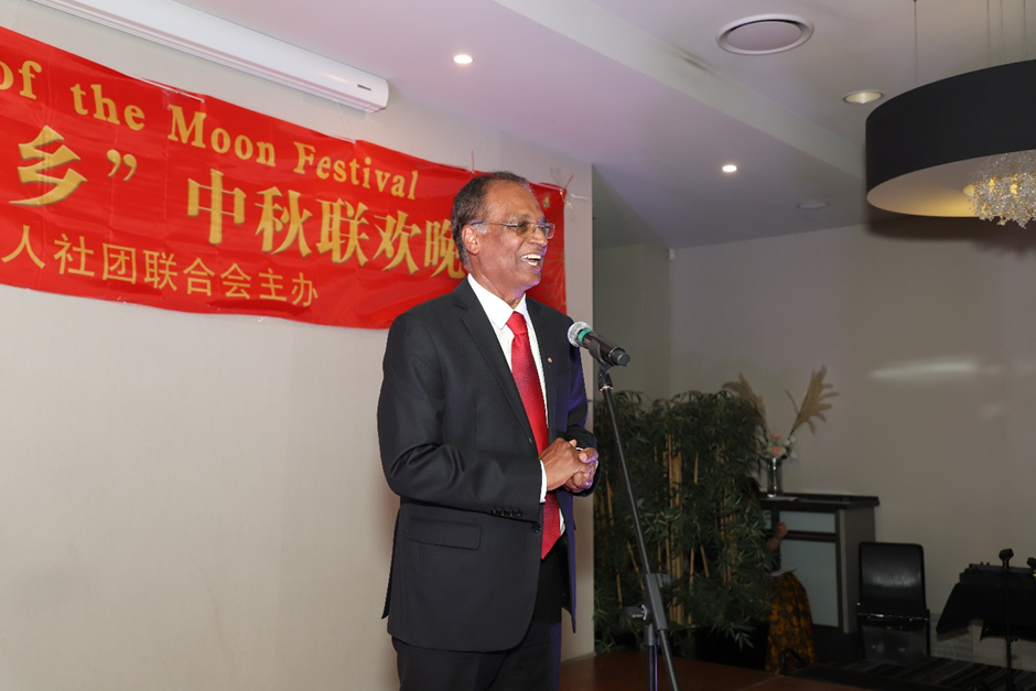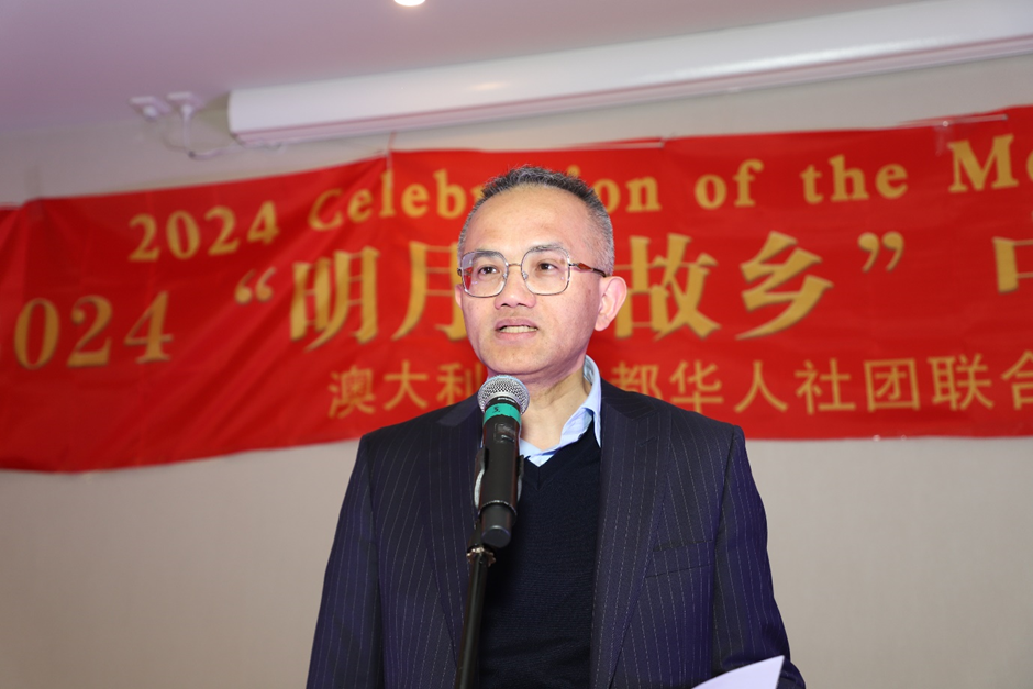 中国驻澳大利亚大使馆公使衔参赞兼总领事蔡志烽先生专程到会祝贺,并发表了热情洋溢的讲话。他代表中国驻澳大利亚大使馆向华人朋友问好,祝大家节日快乐。他说:“中秋国庆是团圆的日子,吉祥如意的日子,追梦的日子。我们庆中秋和中华人民共和国建国75周年华诞就是期盼团结团圆的心情,实现团结的心境,维护团结的心声,致力发展的心愿。