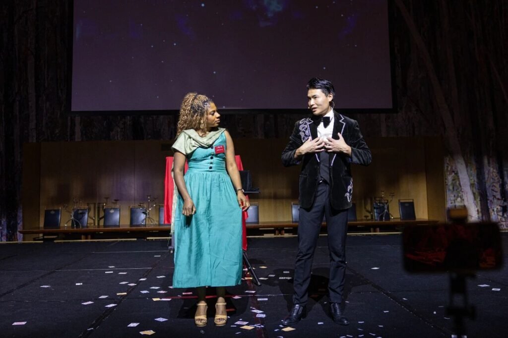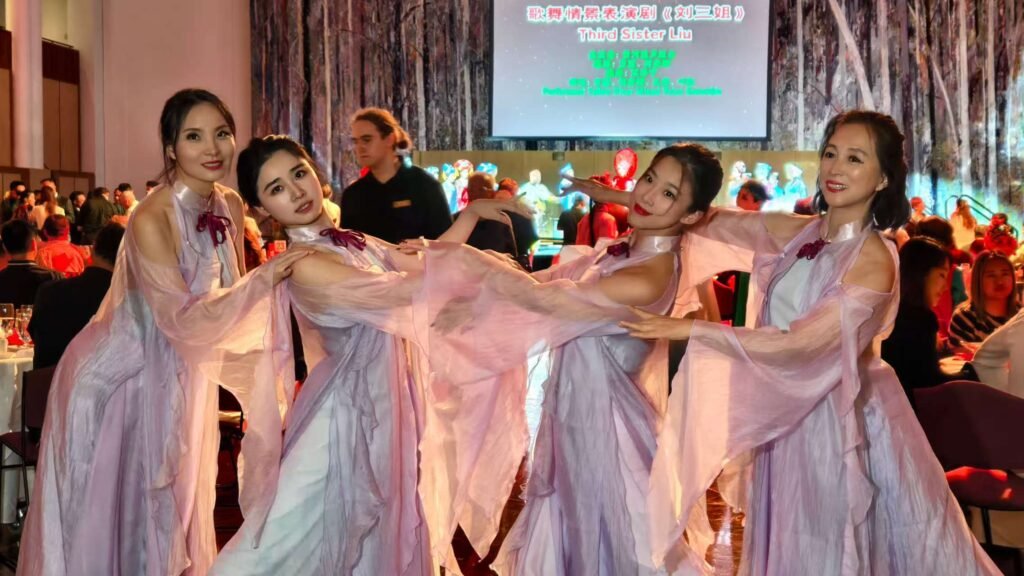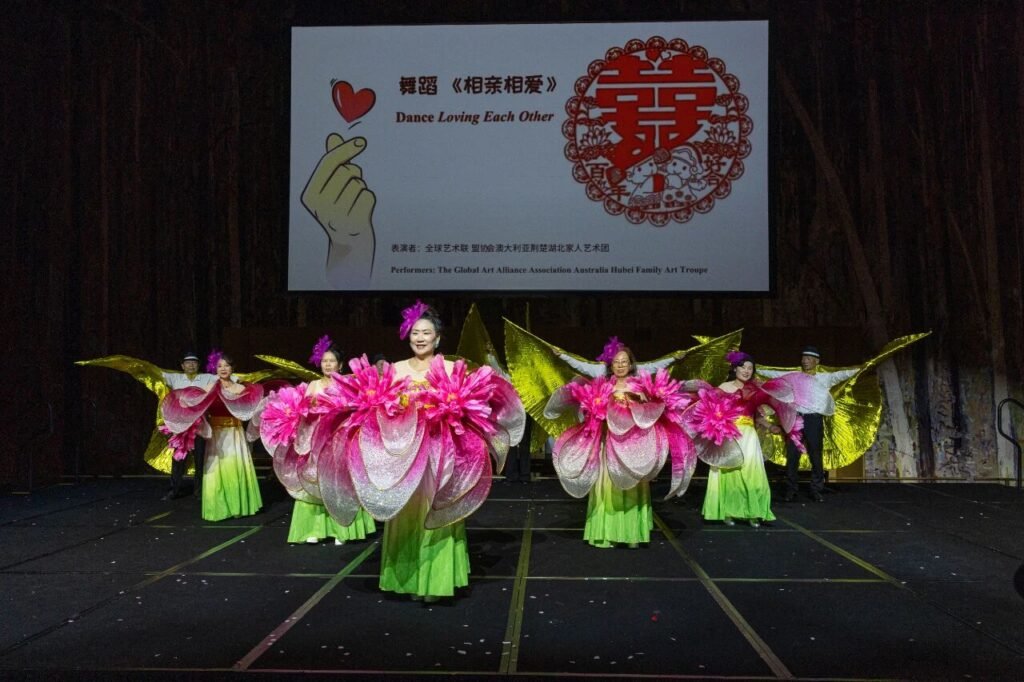 当晚节目亮点之一,是来自武汉杂技团的魔术师吴斌带来的魔术秀《Magic Hands》。他以精妙手法与现场澳洲官员即兴互动,将幽默与技艺自然融合,引发观众阵阵掌声。随后演出精彩纷呈:多民族舞蹈轮番登场,包括新疆舞、印度舞、蒙古舞及京剧舞蹈;澳洲演员带来中国民乐《喜洋洋》与武术表演《咏春武术》,印度孩子们则献上传统印度舞《Sharanu Siddi Vinayaka》,共同诠释澳洲社会的包容与对多元差异的尊重,也呼应了晚会“跨文化交流与共融”的主题。声乐部分汇聚《喀秋莎》《是你一直想着我》《梨花颂》《鸿雁》《船歌》《刘三姐》等多国多民族作品,令人耳目一新;《送你这双翅膀》《爱永在》《春天的芭蕾》《爱国之恋》等合唱曲目由来自不同州的合唱团高水平呈现。舞蹈《与你翩翩》《远古的呼唤》《你是我的期许》《粉墨花旦》《相亲相爱》各具风格,昆州独创的融合舞台剧《不爱胭脂爱乾坤》更以现代审美呈现别样意境。压轴节目《万马奔腾迎新春》将晚会推向高潮,最终在《今夜无眠》的旋律中,全体演员登台谢幕,掌声经久不息。