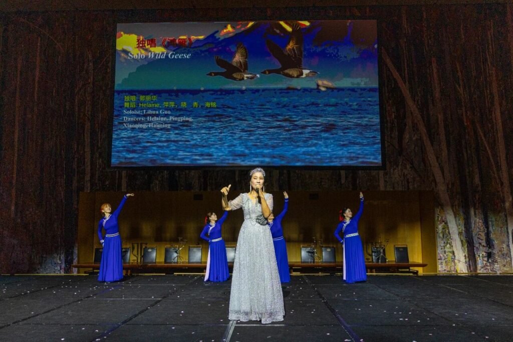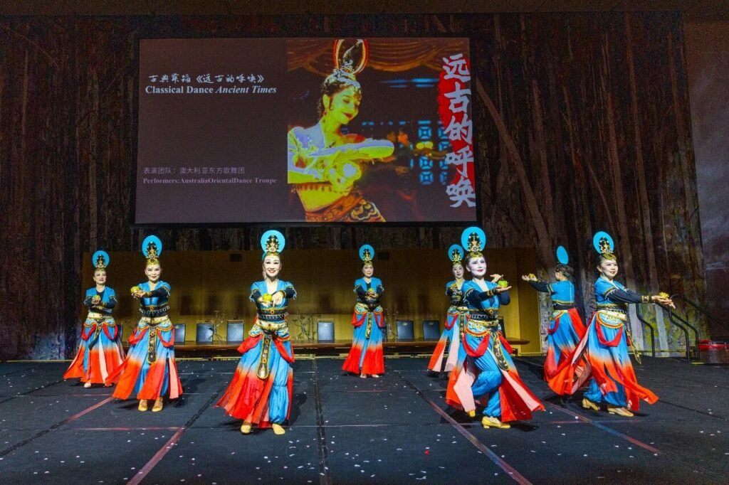 整场演出节目形式多样、内涵丰富:既有新疆舞、印度舞、蒙古舞等多元民族舞蹈展示,也有澳洲表演者演绎的中国民乐《喜洋洋》与《咏春武术》;声乐节目涵盖中外经典,《喀秋莎》《梨花颂》《鸿雁》等曲目引发共鸣;舞蹈《远古的呼唤》《你是我的期许》以及融合时尚元素的走秀,则展现了传统与现代的审美对话。最终,晚会在激昂欢腾的《万马奔腾迎新春》与深情悠扬的《今夜无眠》中圆满落幕。